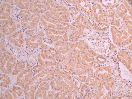 組織特異性:Expressed by distal tubular cells in kidney cortex and in endothelial cells (at protein level). Widely expressed. Strongly expressed in kidney and to a lower extent in heart, adipocytes, hepatoma, endothelial cells, skeletal muscle, brain, several brain t