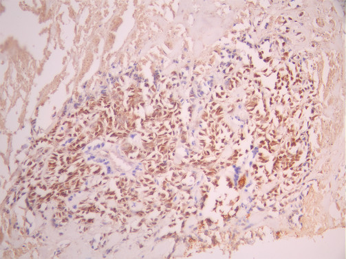 IHC image of CSB-RA090067A0HU diluted at 1:100 and staining in paraffin-embedded human breast cancer performed on a Leica BondTM system. After dewaxing and hydration, antigen retrieval was mediated by high pressure in a citrate buffer (pH 6.0). Section was blocked with 10% normal goat serum 30min at RT. Then primary antibody (1% BSA) was incubated at 4°C overnight. The primary is detected by a Goat anti-rabbit polymer IgG labeled by HRP and visualized using 0.05% DAB.