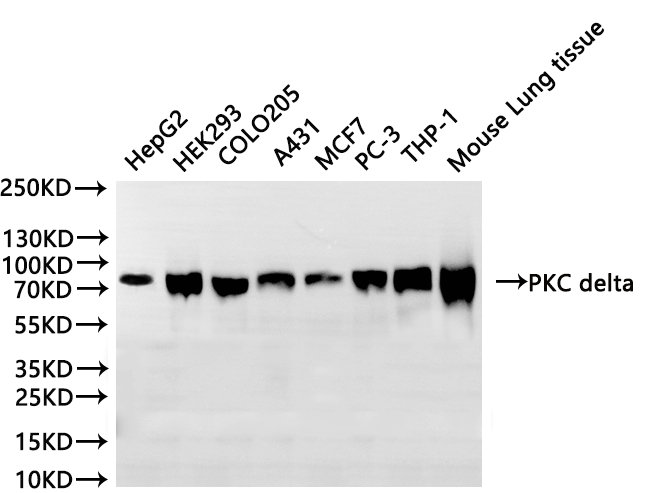 CVID9 antibody; D14Ertd420e antibody; Kinase PKC delta antibody; KPCD antibody; KPCD_HUMAN antibody; MAY 1 antibody; MAY1 antibody; MGC49908 antibody; nPKC delta antibody; nPKC-delta antibody; PCKd antibody; PKC d antibody; PKC delta antibody; PKCD antibody; PKCdelta antibody; PRKC D antibody; PRKC delta antibody; Prkcd antibody; Protein Kinase C delta antibody; Protein kinase C delta type antibody; Protein kinase C delta VIII antibody; Protein Kinase Cdelta antibody; Tyrosine protein kinase PRKCD antibody