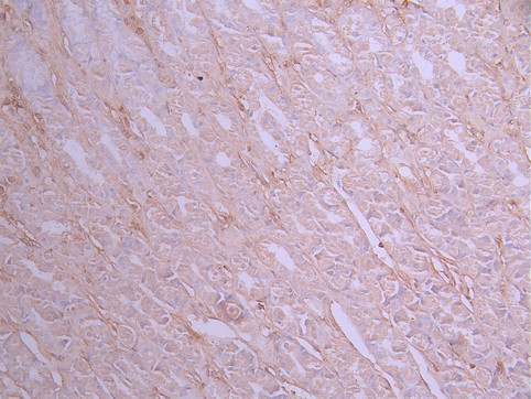 IHC image of CSB-RA898865A0HU diluted at 1:100 and staining in paraffin-embedded human stomach tissue performed on a Leica BondTM system. After dewaxing and hydration, antigen retrieval was mediated by high pressure in a citrate buffer (pH 6.0). Section was blocked with 10% normal goat serum 30min at RT. Then primary antibody (1% BSA) was incubated at 4°C overnight. The primary is detected by a Goat anti-rabbit polymer IgG labeled by HRP and visualized using 0.05% DAB.