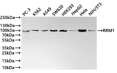 別名:R1 antibody; Ribonucleoside diphosphate reductase large subunit antibody; Ribonucleoside diphosphate reductase M1 chain antibody; Ribonucleoside diphosphate reductase subunit M1 antibody; Ribonucleoside reductase; large subunit antibody; Ribonucleoside-diphosphate reductase large subunit antibody; Ribonucleoside-diphosphate reductase subunit M1 antibody; Ribonucleotide reductase large chain antibody; Ribonucleotide reductase large subunit antibody; Ribonucleotide reductase M1 antibody; Ribonucleotide reductase M1 polypeptide antibody; Ribonucleotide reductase R1 subunit antibody; Ribonucleotide reductase; M1 subunit antibody; RIR 1 antibody; RIR1 antibody; RIR1_HUMAN antibody; RR 1 antibody; RR1 antibody; RRM 1 antibody; RRM1 antibody