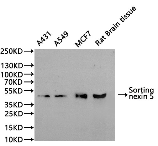 All lanes: Sorting nexin 5 antibody at 1:1000