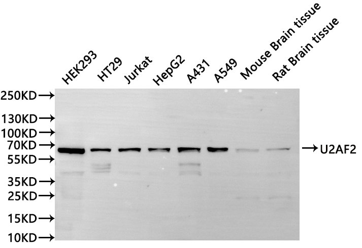 別名:hU2AF(65) antibody; hU2AF65 antibody; Splicing factor U2AF 65 kDa subunit antibody; U2 (RNU2) small nuclear RNA auxiliary factor 2 antibody; U2 auxiliary factor 65 kDa subunit antibody; U2 small nuclear ribonucleoprotein auxiliary factor (65kD) antibody; U2 small nuclear RNA auxiliary factor 2 antibody; U2 snRNP auxiliary factor large subunit antibody; U2af2 antibody; U2AF2_HUMAN antibody; U2AF65 antibody