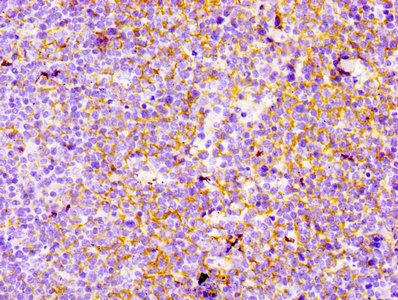 • IHC image of CY5710 diluted at 1:100 and staining in paraffin-embedded human tonsil tissue performed on a Leica BondTM system. After dewaxing and hydration, antigen retrieval was mediated by high pressure in a citrate buffer (pH 6.0). Section was blocked with 10% normal goat serum 30min at RT. Then primary antibody (1% BSA) was incubated at 4℃ overnight. The primary is detected by a biotinylated secondary antibody and visualized using an HRP conjugated SP system.