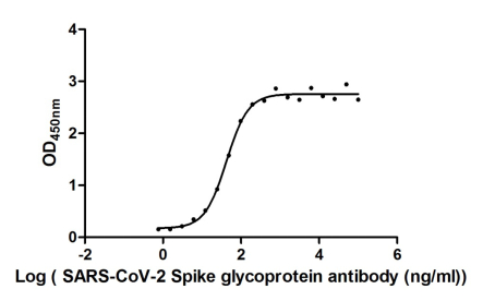 Activity: Measured by its binding ability in a functional ELISA. Immobilized SARS-CoV-2-S (CSB-MP3324GMY) at 2 μg/ml can bind SARS-CoV-2-S Antibody, the EC50 is 42.83 ng/ml. -