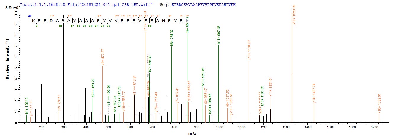Based on the SEQUEST from database of E.coli host and target protein, the LC-MS/MS Analysis result of CSB-EP337202DOA could indicate that this peptide derived from E.coli-expressed Arabidopsis thaliana (Mouse-ear cress) ERD14.