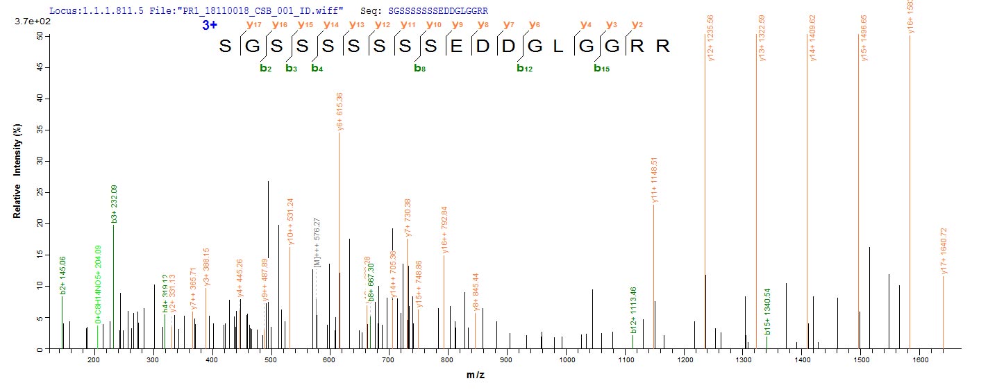 Based on the SEQUEST from database of Yeast host and target protein, the LC-MS/MS Analysis result of CSB-YP338701DOA could indicate that this peptide derived from Yeast-expressed Arabidopsis thaliana (Mouse-ear cress) XERO1.