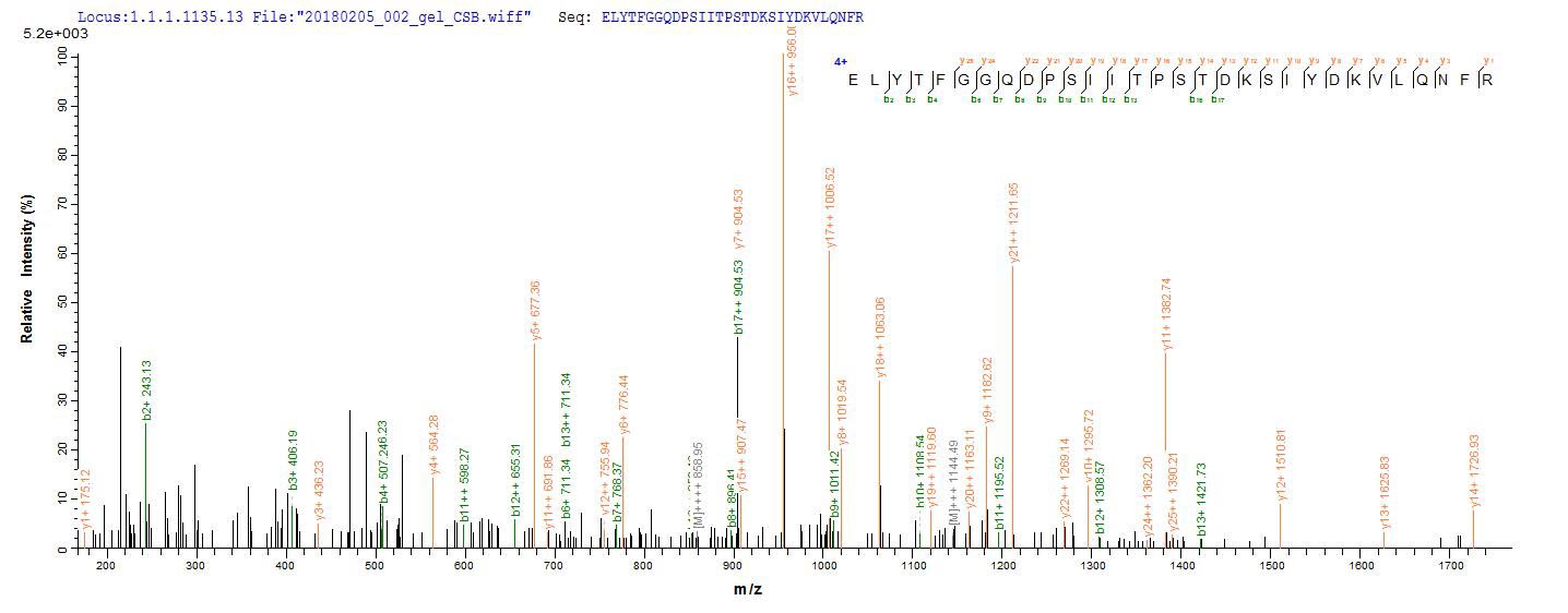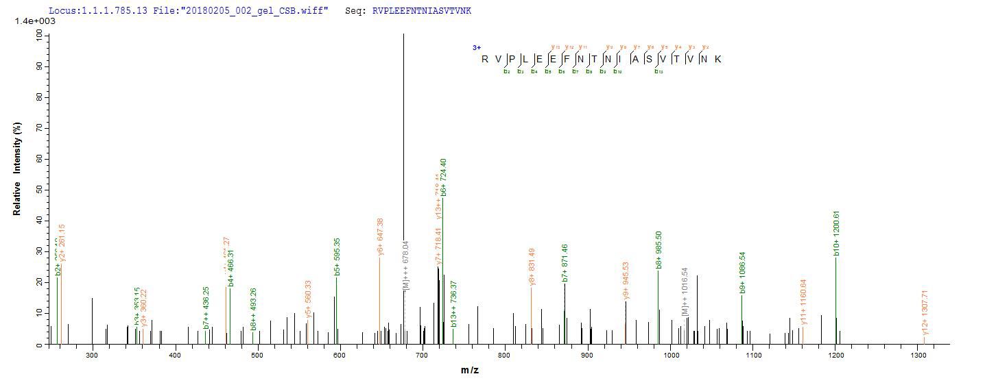 Based on the SEQUEST from database of E.coli host and target protein, the LC-MS/MS Analysis result of CSB-EP533025DUJ1 could indicate that this peptide derived from E.coli-expressed Clostridium botulinum (strain Okra / Type B1) botB.