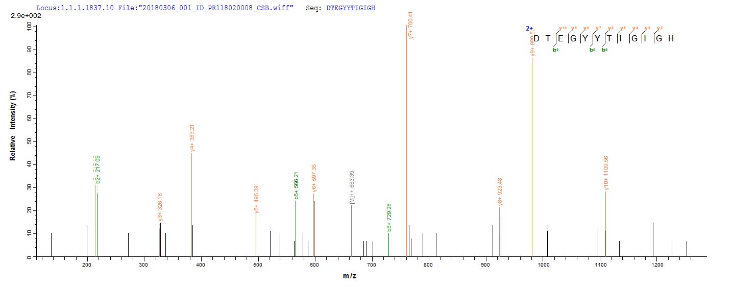 Based on the SEQUEST from database of E.coli host and target protein, the LC-MS/MS Analysis result of CSB-EP360435EDZ could indicate that this peptide derived from E.coli-expressed Enterobacteria phage T4 (Bacteriophage T4) E.