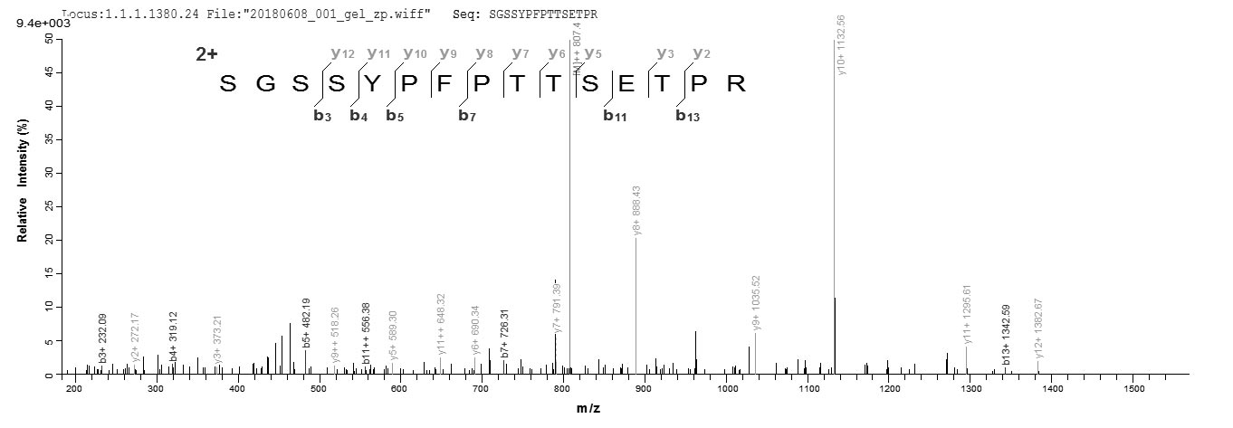 Based on the SEQUEST from database of Yeast host and target protein, the LC-MS/MS Analysis result of CSB-YP362349ENVe1 could indicate that this peptide derived from Yeast-expressed Escherichia coli (strain K12) fimH.