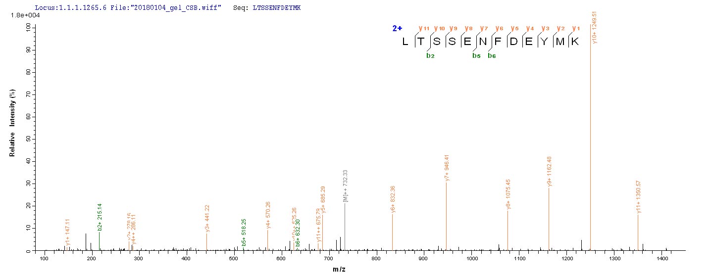 Based on the SEQUEST from database of E.coli host and target protein, the LC-MS/MS Analysis result of CSB-EP315130HO could indicate that this peptide derived from E.coli-expressed Equus caballus (Horse) PMP2.