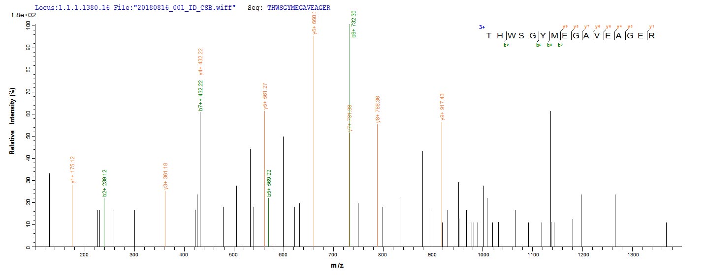 Based on the SEQUEST from database of E.coli host and target protein, the LC-MS/MS Analysis result of CSB-EP013399HU could indicate that this peptide derived from E.coli-expressed Homo sapiens (Human) MAOB.
