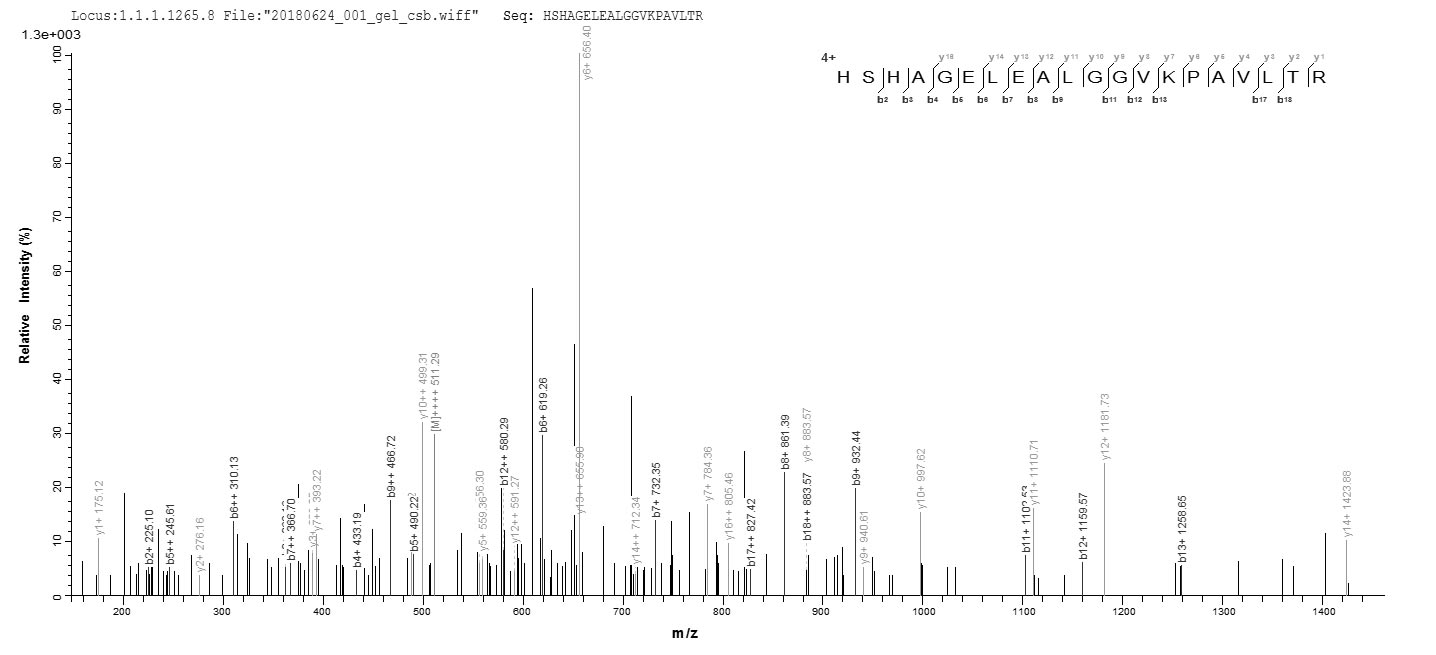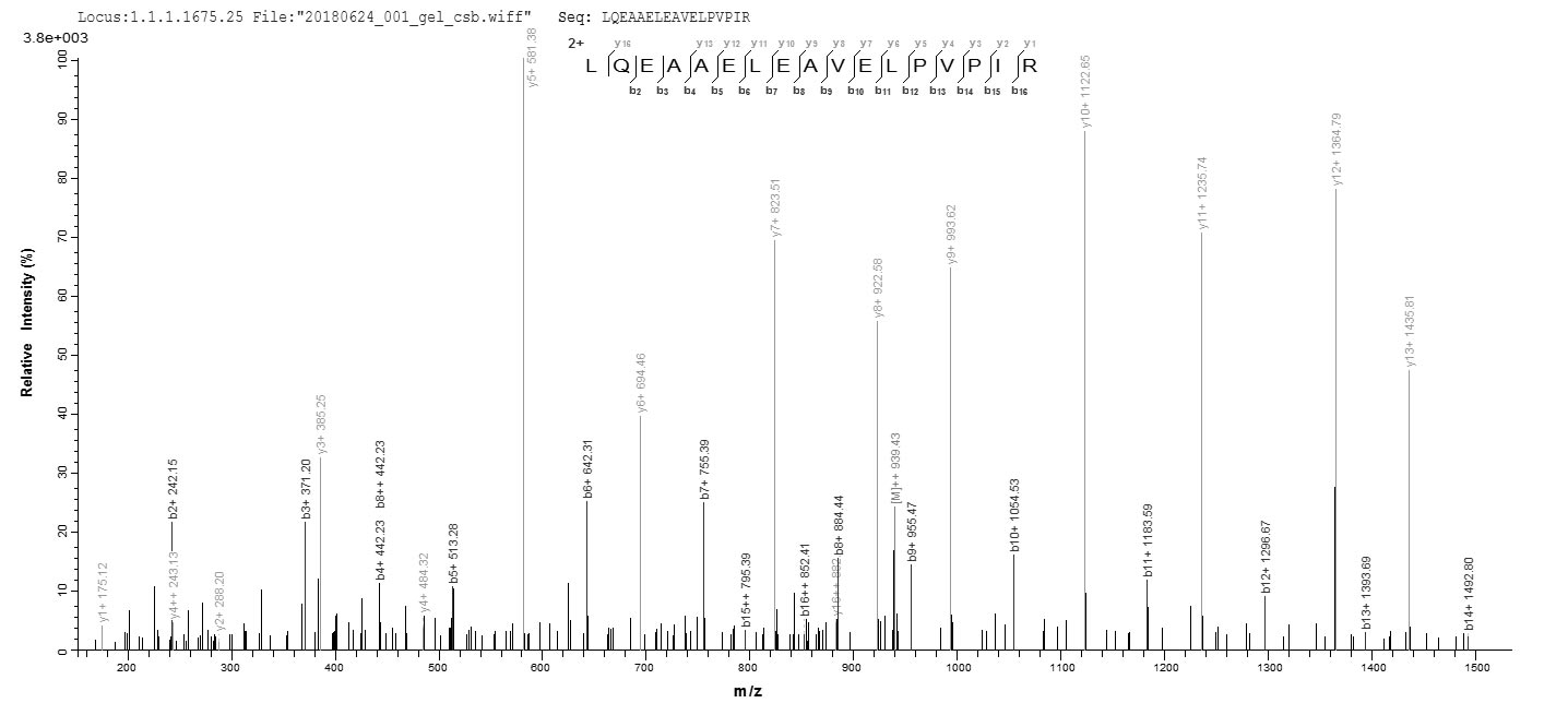 • Based on the SEQUEST from database of E.coli host and target protein, the LC-MS/MS Analysis result of CSB-EP021663HUb1 could indicate that this peptide derived from E.coli-expressed Homo sapiens (Human) SLC4A1.