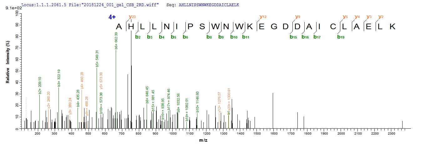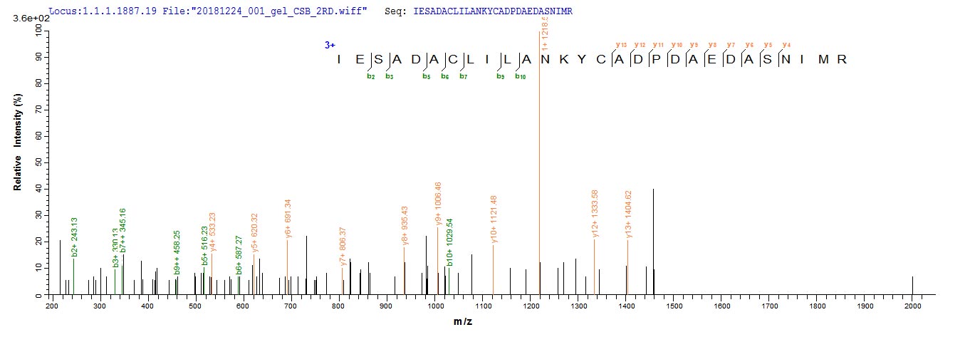 • Based on the SEQUEST from database of E.coli host and target protein, the LC-MS/MS Analysis result of CSB-EP614255HU could indicate that this peptide derived from E.coli-expressed Homo sapiens (Human) KCNMA1.