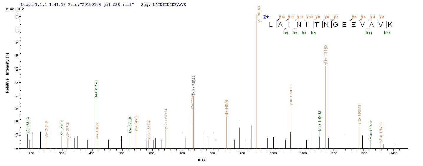 Based on the SEQUEST from database of E.coli host and target protein, the LC-MS/MS Analysis result of CSB-EP006065HU could indicate that this peptide derived from E.coli-expressed Homo sapiens (Human) CSNK1A1.
