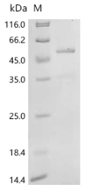 66.6kDa The?reducing?(R)?protein?migrates?as?54?kDa?in?SDS-PAGE?may?be?due?to?protein cleavage.(C-terminal p12 or p13 domain is cleaved)