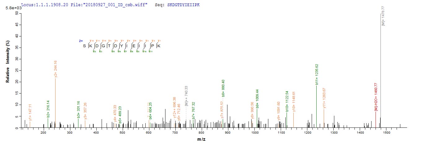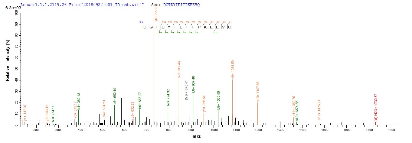 • Based on the SEQUEST from database of E.coli host and target protein, the LC-MS/MS Analysis result of CSB-EP007929HU could indicate that this peptide derived from E.coli-expressed Homo sapiens (Human) F5.