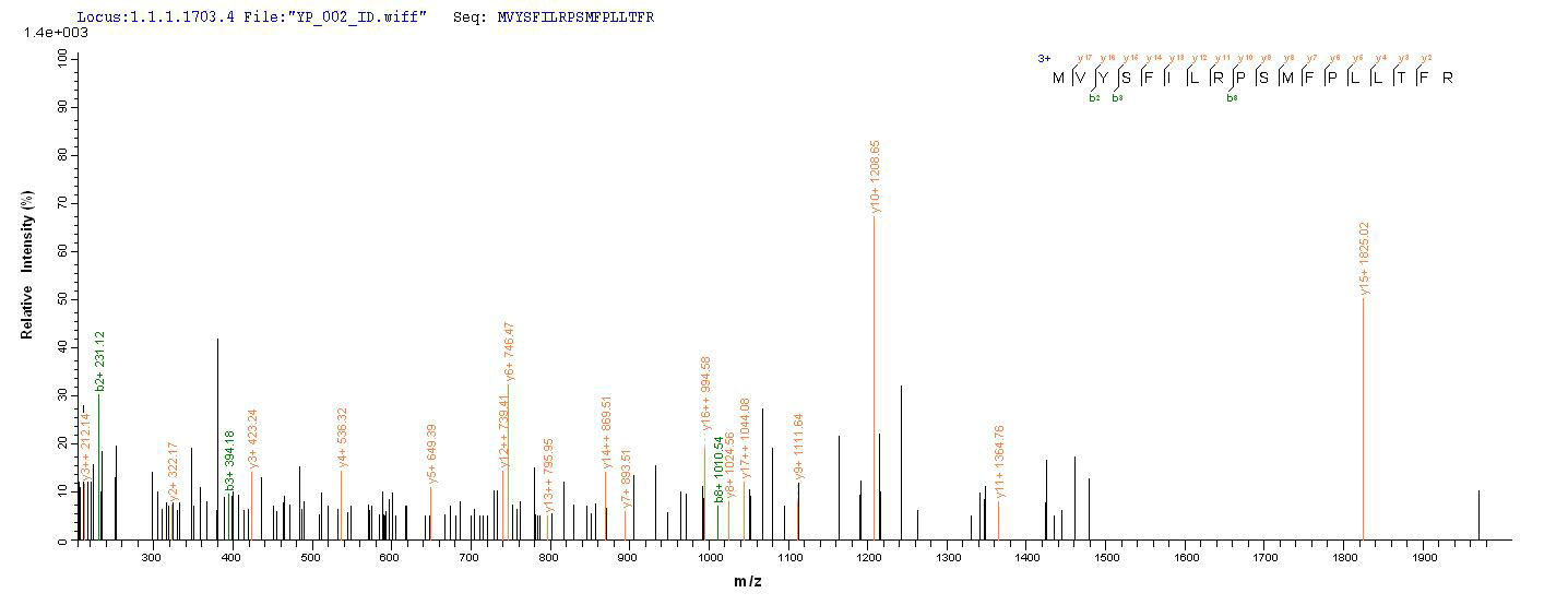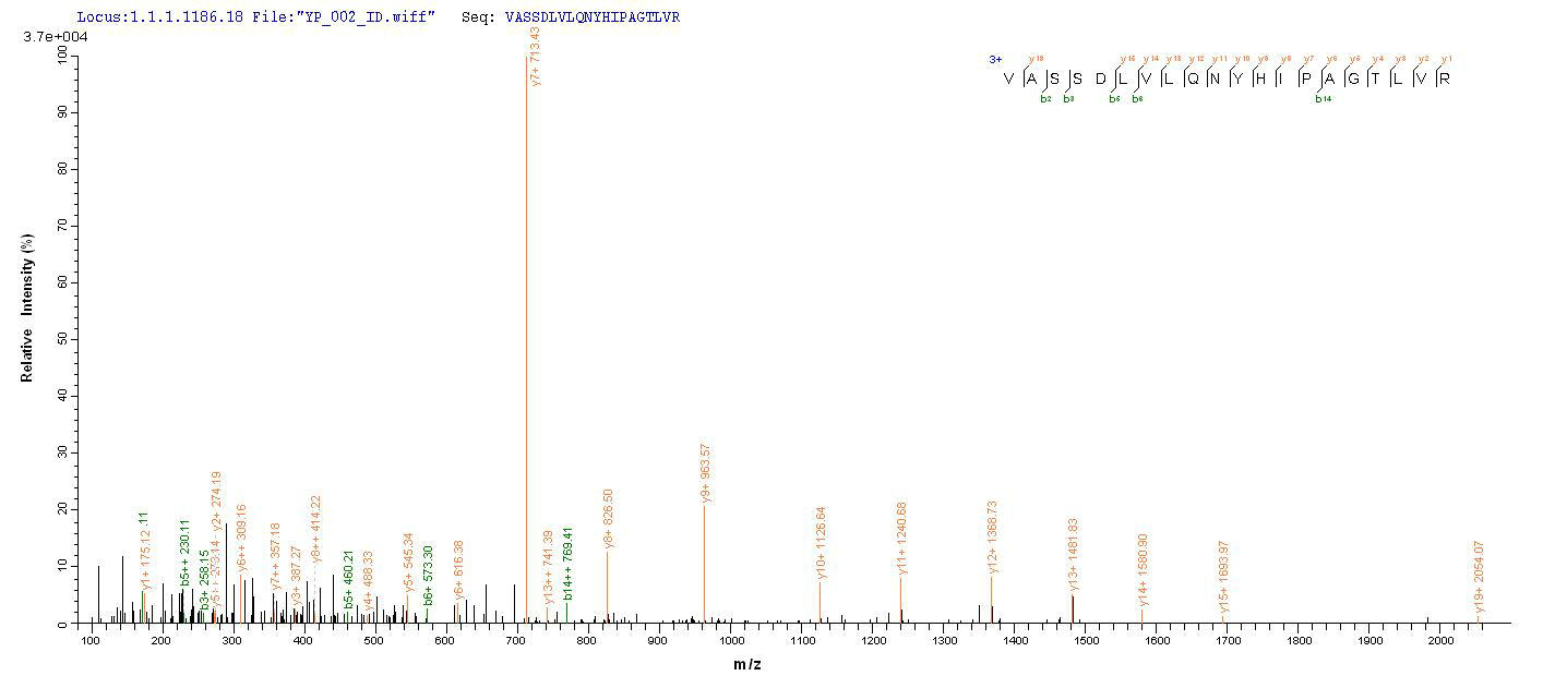 Based on the SEQUEST from database of E.coli host and target protein, the LC-MS/MS Analysis result of CSB-EP006390HU could indicate that this peptide derived from E.coli-expressed Homo sapiens (Human) CYP11B1.