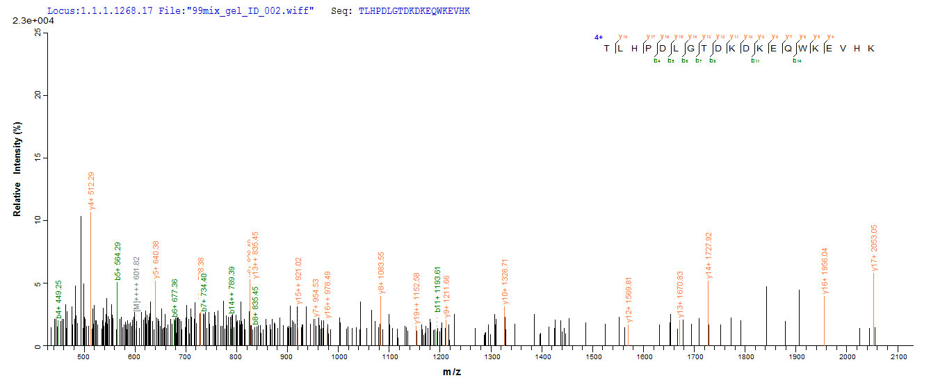 Based on the SEQUEST from database of E.coli host and target protein, the LC-MS/MS Analysis result of CSB-RP000494h could indicate that this peptide derived from E.coli-expressed Homo sapiens (Human) PIG19.