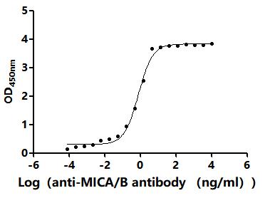 Measured by its binding ability in a functional ELISA.Immobilized Human MICA at 2 μg/ml can bind Anti-MICA/B recombinant antibody (CSB-RA56059MA1HU). The EC50 is 0.6924-0.9195 ng/mL. Biological Activity Assay