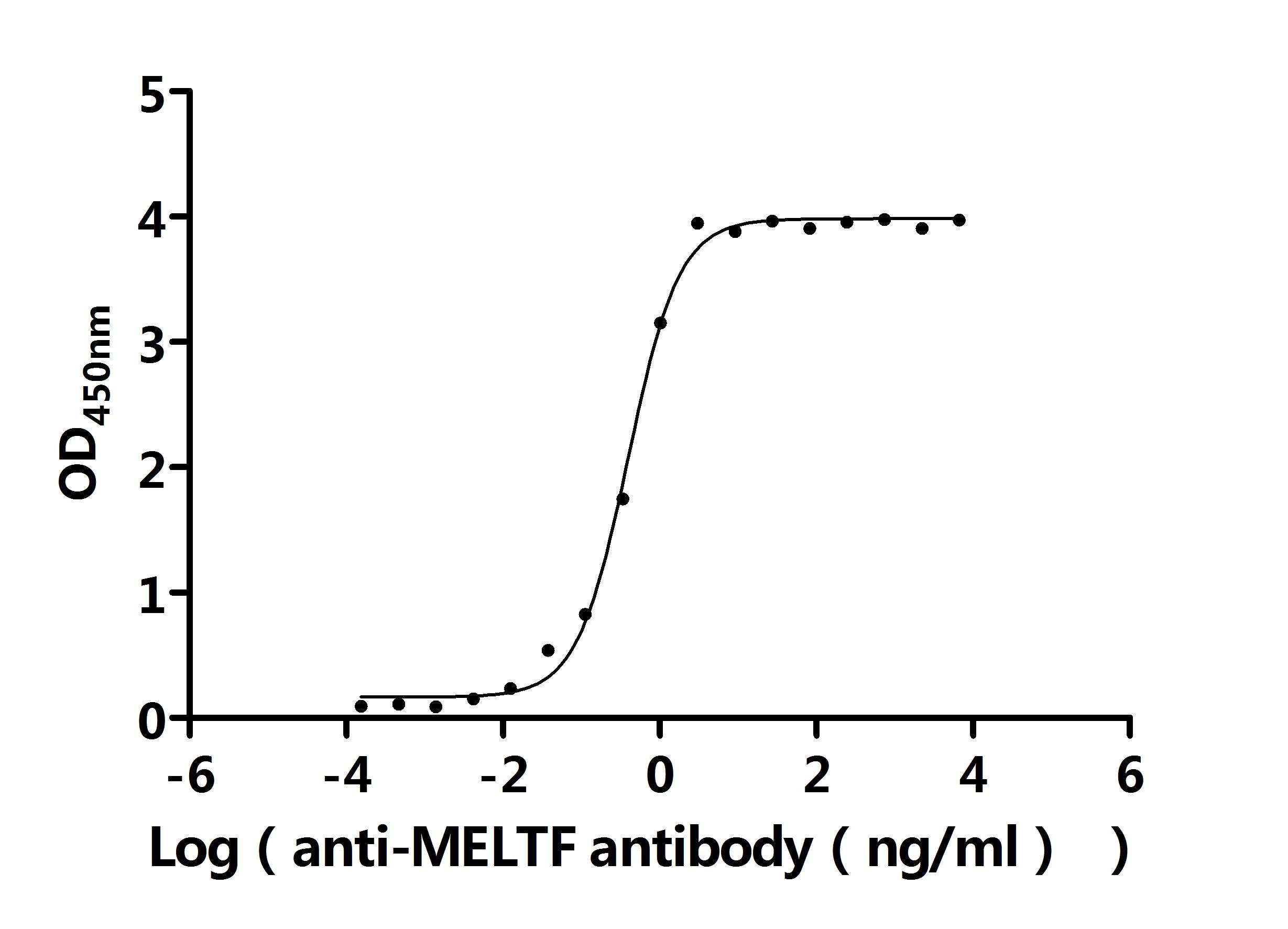Measured by its binding ability in a functional ELISA. Immobilized Human MELTF at 2 μg/ml can bind Anti-MELTF recombinant antibody (CSB-RA013754MA1HU). The EC50 is 0.3476-0.4529 ng/mL. Biological Activity Assay -