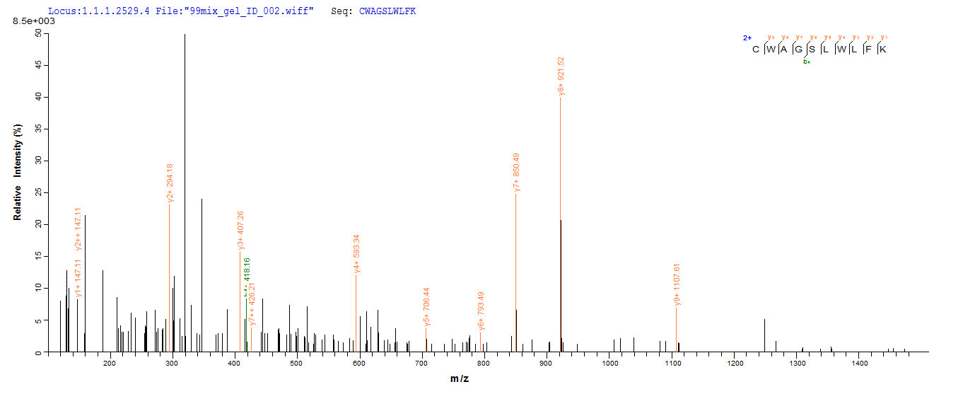 Based on the SEQUEST from database of E.coli host and target protein, the LC-MS/MS Analysis result of CSB-EP859030HU could indicate that this peptide derived from E.coli-expressed Homo sapiens (Human) WDR77.