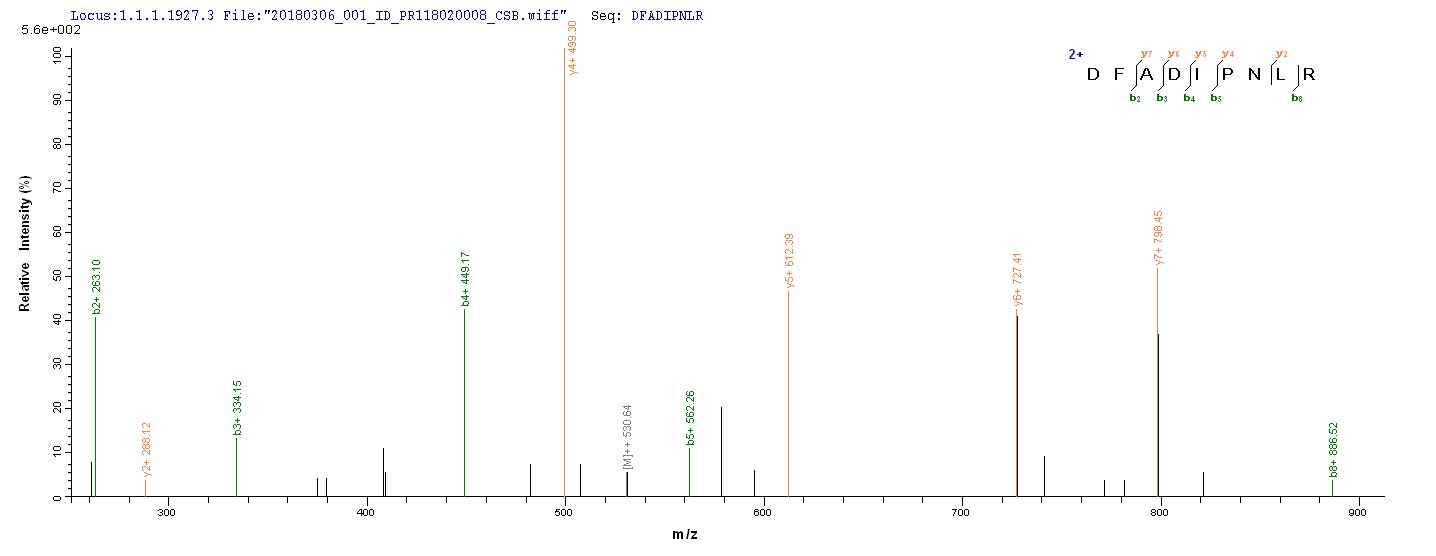 Based on the SEQUEST from database of Yeast host and target protein, the LC-MS/MS Analysis result of CSB-YP016314HU could indicate that this peptide derived from Yeast-expressed Homo sapiens (Human) OGN.