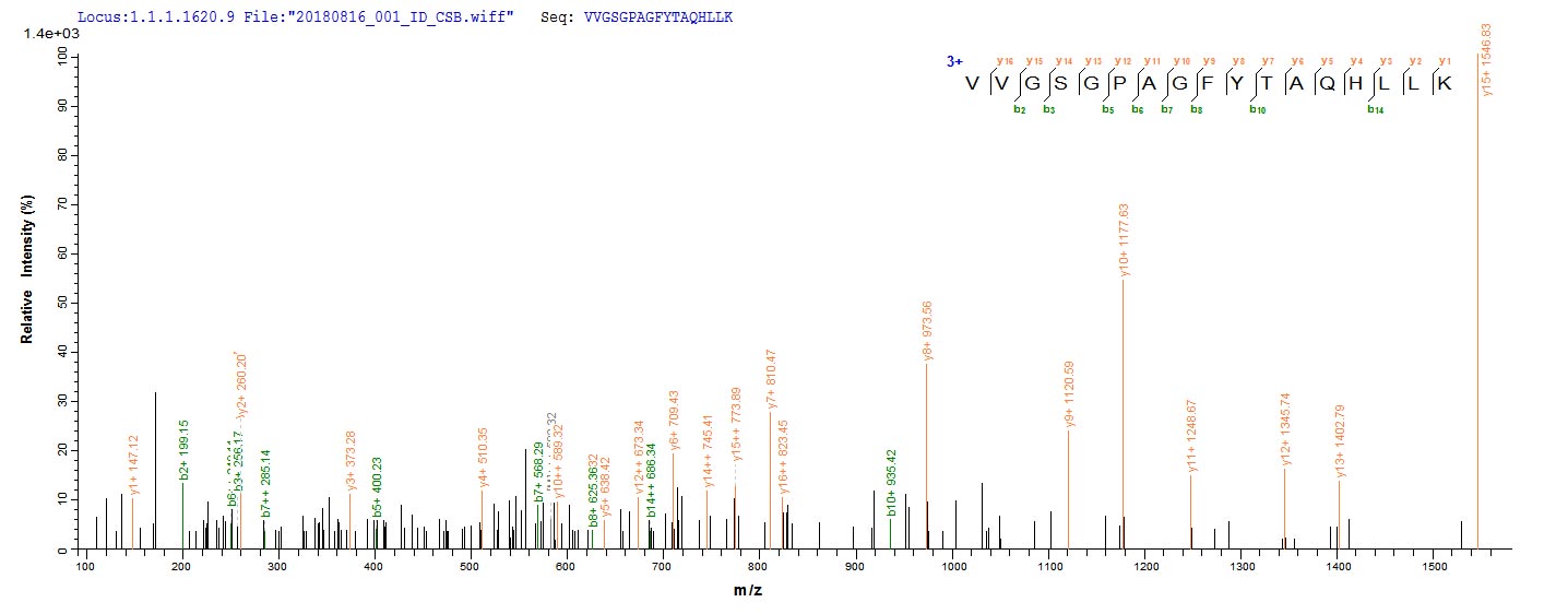 Based on the SEQUEST from database of E.coli host and target protein, the LC-MS/MS Analysis result of CSB-EP008575HU could indicate that this peptide derived from E.coli-expressed Homo sapiens (Human) FDXR.