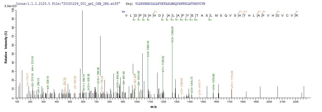 • Based on the SEQUEST from database of E.coli host and target protein, the LC-MS/MS Analysis result of CSB-EP025391HU1 could indicate that this peptide derived from E.coli-expressed Homo sapiens (Human) TYK2.