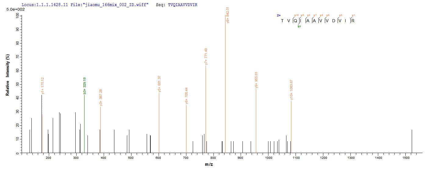 Based on the SEQUEST from database of Yeast host and target protein, the LC-MS/MS Analysis result of CSB-YP018020HU could indicate that this peptide derived from Yeast-expressed Homo sapiens (Human) PIP.