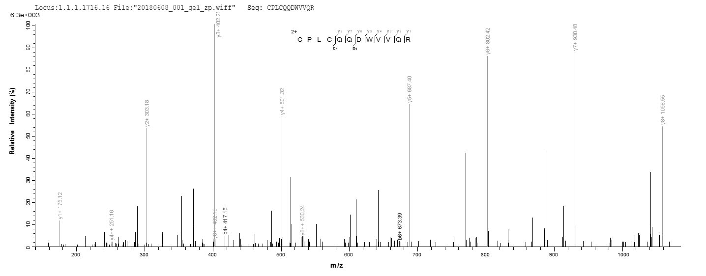 Based on the SEQUEST from database of E.coli host and target protein, the LC-MS/MS Analysis result of CSB-EP019897HU could indicate that this peptide derived from E.coli-expressed Homo sapiens (Human) RNF7.