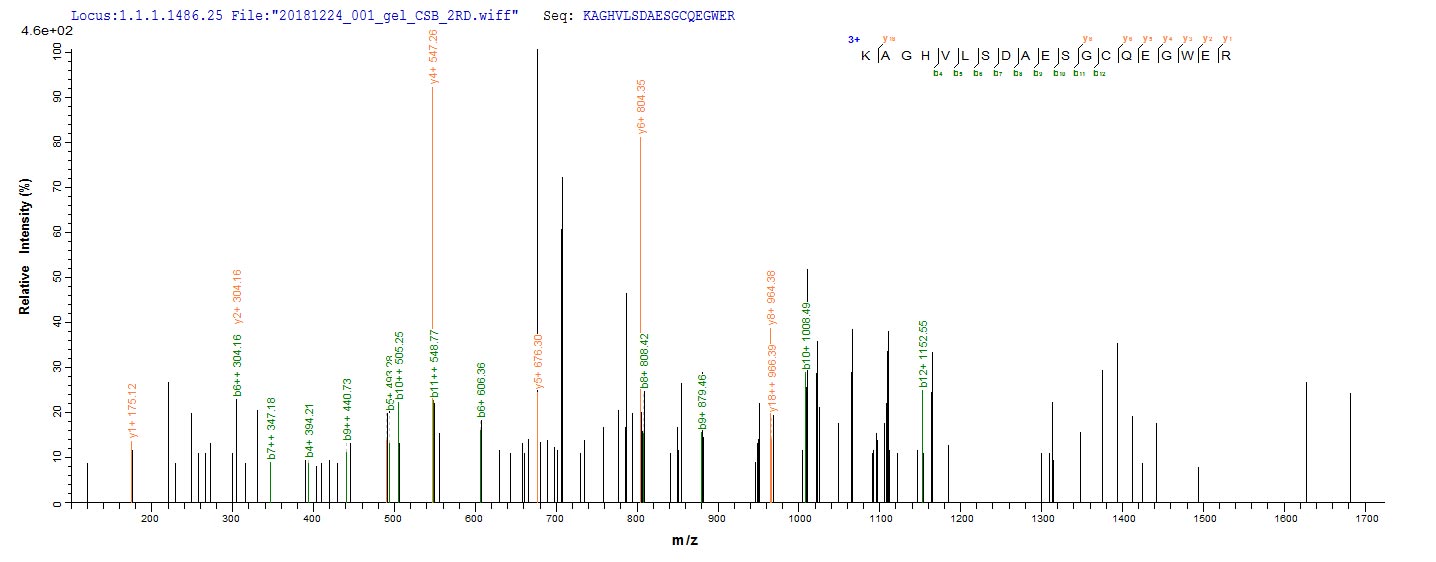 Based on the SEQUEST from database of E.coli host and target protein, the LC-MS/MS Analysis result of CSB-EP623780HU could indicate that this peptide derived from E.coli-expressed Homo sapiens (Human) PLA2R1.
