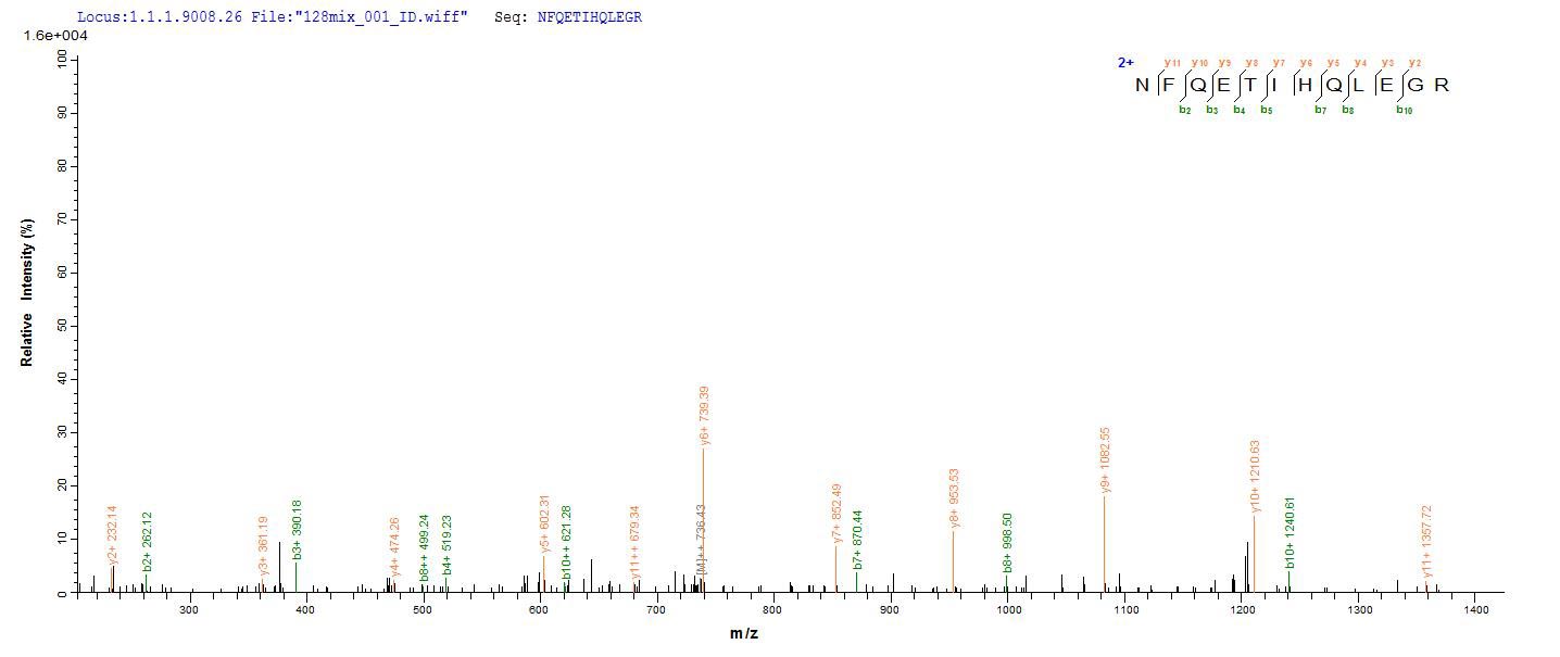 • Based on the SEQUEST from database of E.coli host and target protein, the LC-MS/MS Analysis result of CSB-EP024154HU could indicate that this peptide derived from E.coli-expressed Homo sapiens (Human) TRAF6.