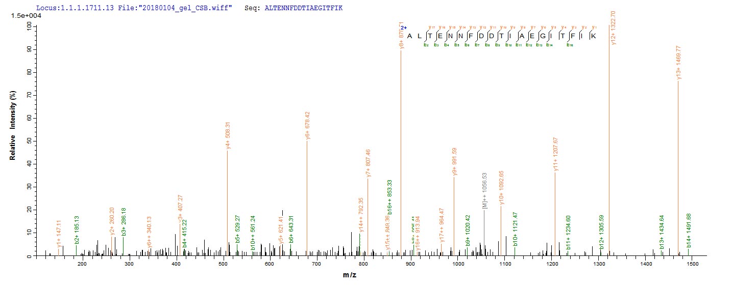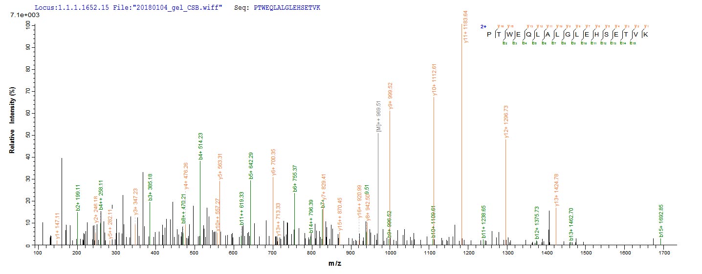 Based on the SEQUEST from database of E.coli host and target protein, the LC-MS/MS Analysis result of CSB-EP847679HU could indicate that this peptide derived from E.coli-expressed Homo sapiens (Human) TXNDC5.