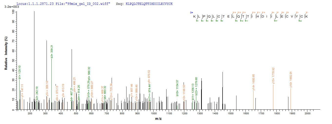 Based on the SEQUEST from database of E.coli host and target protein, the LC-MS/MS Analysis result of CSB-EP365854HML could indicate that this peptide derived from E.coli-expressed Homo sapiens (Human) E6.