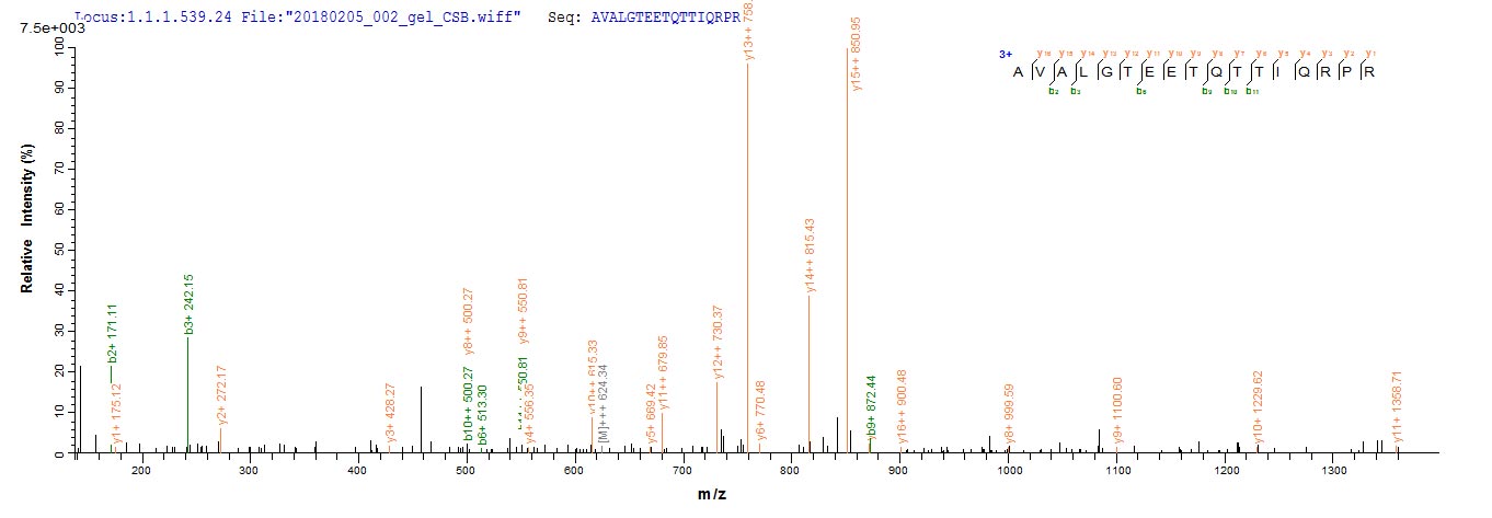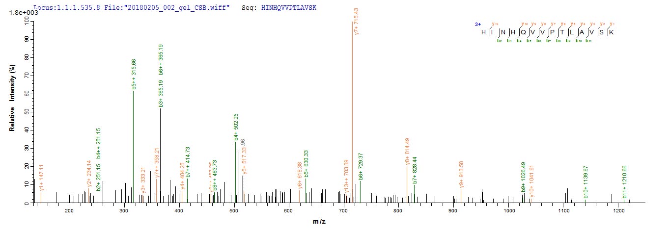 Based on the SEQUEST from database of E.coli host and target protein, the LC-MS/MS Analysis result of CSB-EP365852HML could indicate that this peptide derived from E.coli-expressed Homo sapiens (Human) E2.