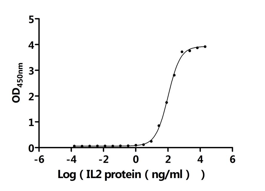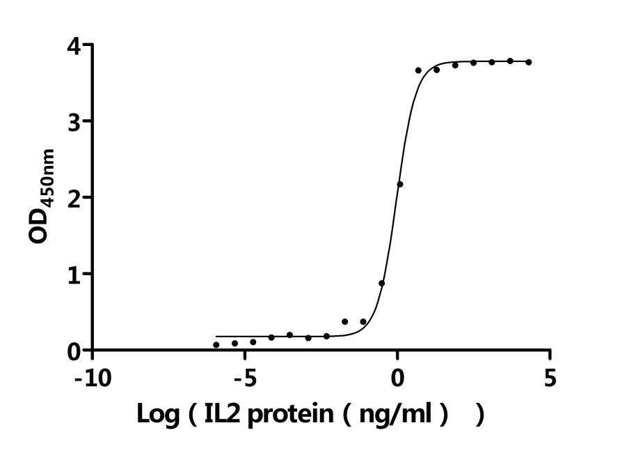Measured by its binding ability in a functional ELISA. Immobilized Macaca fascicularis IL2RA at 2 μg/ml can bind Human IL2 (CSB-MP011629HU). The EC50 is 0.8151-1.087 ng/mL. Biological Activity Assay
