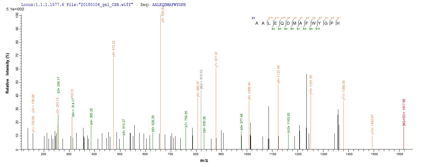 • Based on the SEQUEST from database of Yeast host and target protein, the LC-MS/MS Analysis result of CSB-YP010583MO could indicate that this peptide derived from Yeast-expressed Mus musculus (Mouse) Hmox1.
