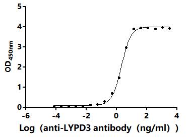 Measured by its binding ability in a functional ELISA.Immobilized Mouse Lypd3 at 2 μg/ml can bind Anti-LYPD3 recombinant antibody (CSB-RA013263MA2HU). The EC50 is 1.995-2.345 ng/mL. Biological Activity Assay