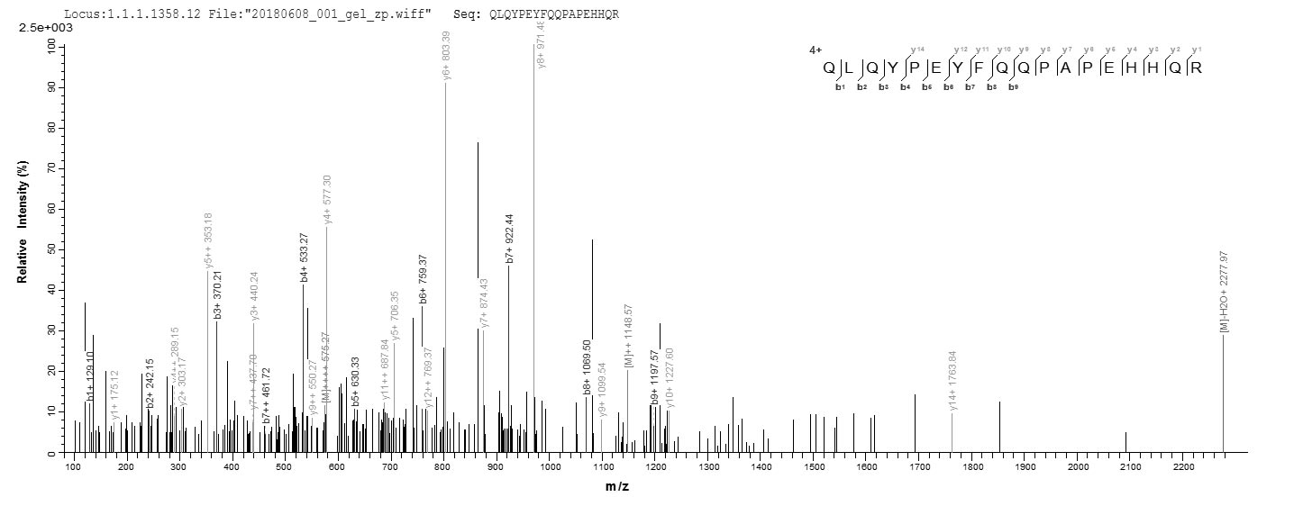 • Based on the SEQUEST from database of E.coli host and target protein, the LC-MS/MS Analysis result of CSB-EP013041MO could indicate that this peptide derived from E.coli-expressed Mus musculus (Mouse) Loxl2.