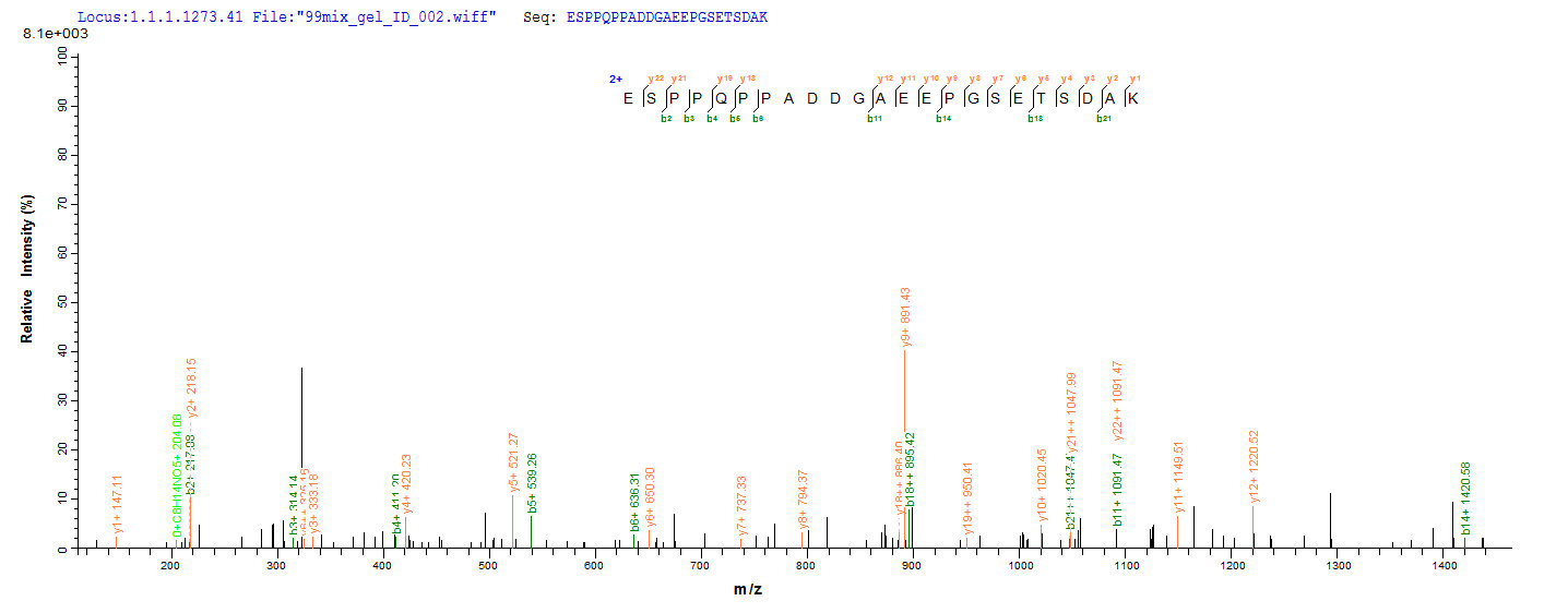 Based on the SEQUEST from database of Yeast host and target protein, the LC-MS/MS Analysis result of CSB-YP013481MO could indicate that this peptide derived from Yeast-expressed Mus musculus (Mouse) Mapt.