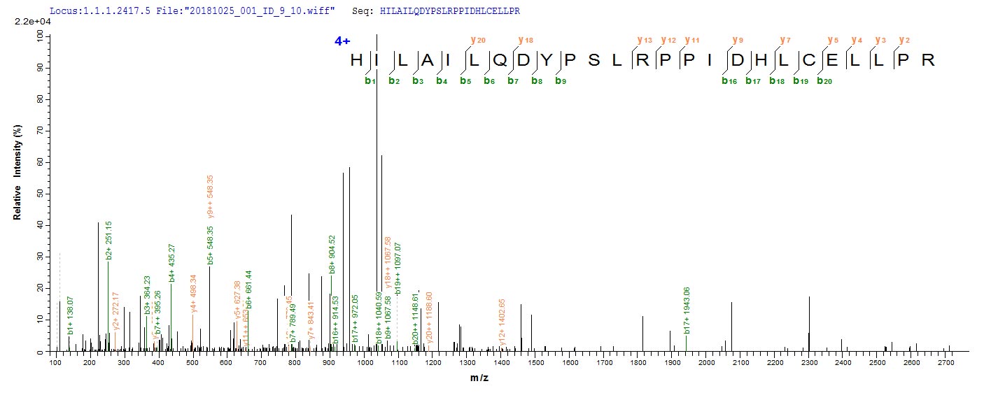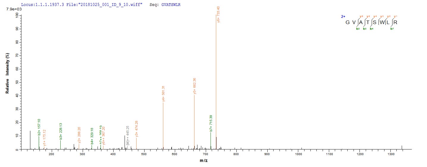Based on the SEQUEST from database of E.coli host and target protein, the LC-MS/MS Analysis result of CSB-EP018378MO could indicate that this peptide derived from E.coli-expressed Mus musculus (Mouse) Por.