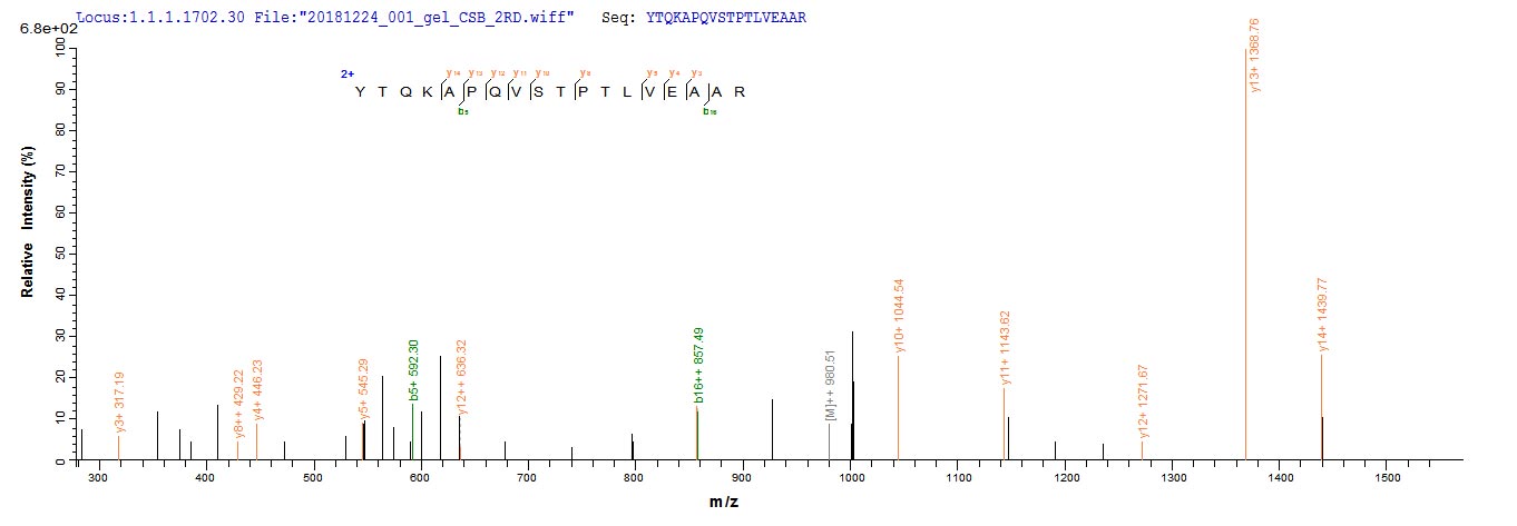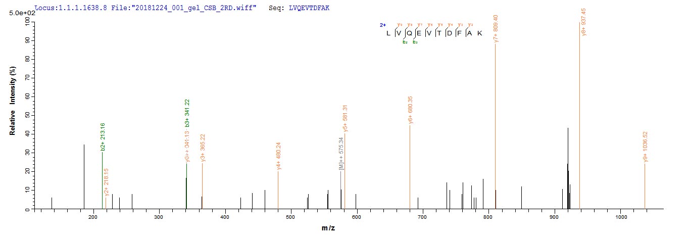 Based on the SEQUEST from database of Yeast host and target protein, the LC-MS/MS Analysis result of CSB-YP001561MO could indicate that this peptide derived from Yeast-expressed Mus musculus (Mouse) Alb.