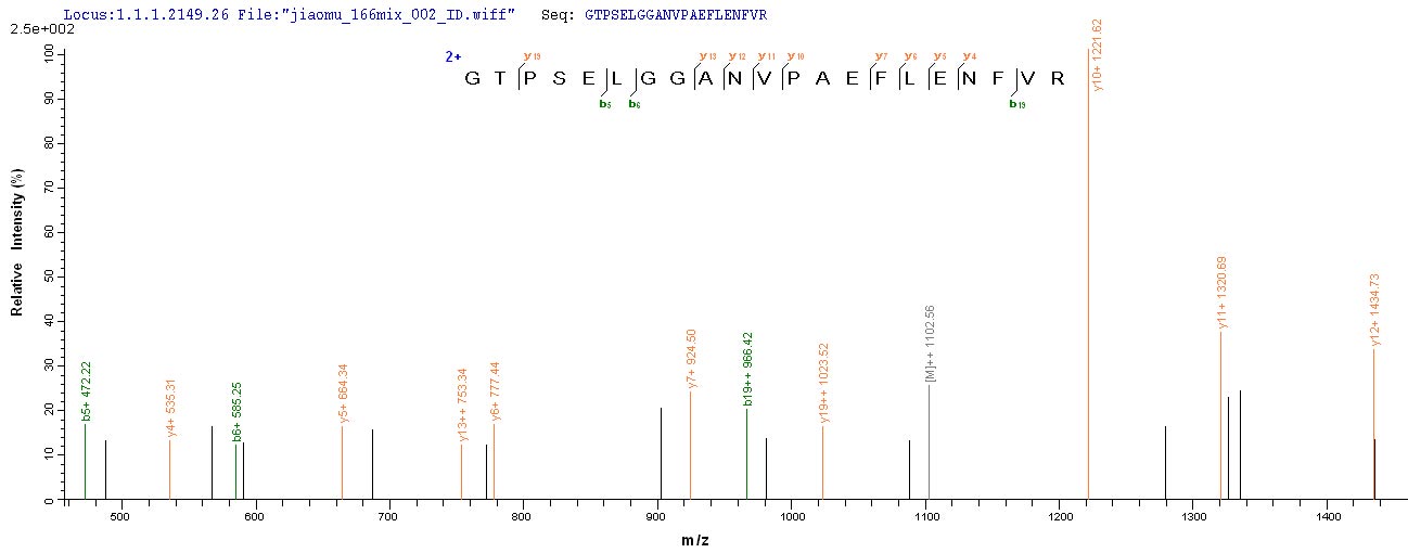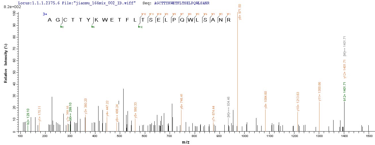 • Based on the SEQUEST from database of E.coli host and target protein, the LC-MS/MS Analysis result of CSB-EP324138MKZ could indicate that this peptide derived from E.coli-expressed Mycobacterium kansasii fbpB.