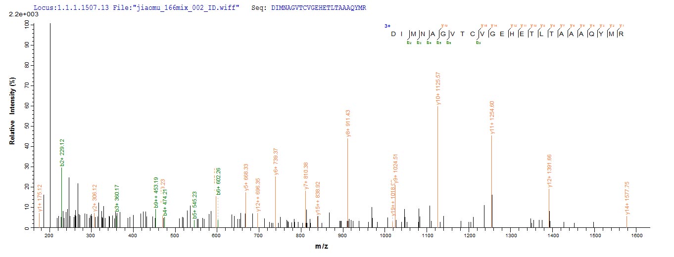 • Based on the SEQUEST from database of E.coli host and target protein, the LC-MS/MS Analysis result of CSB-EP516950MVZ could indicate that this peptide derived from E.coli-expressed Mycobacterium tuberculosis (strain ATCC 25618 / H37Rv) hrp1.