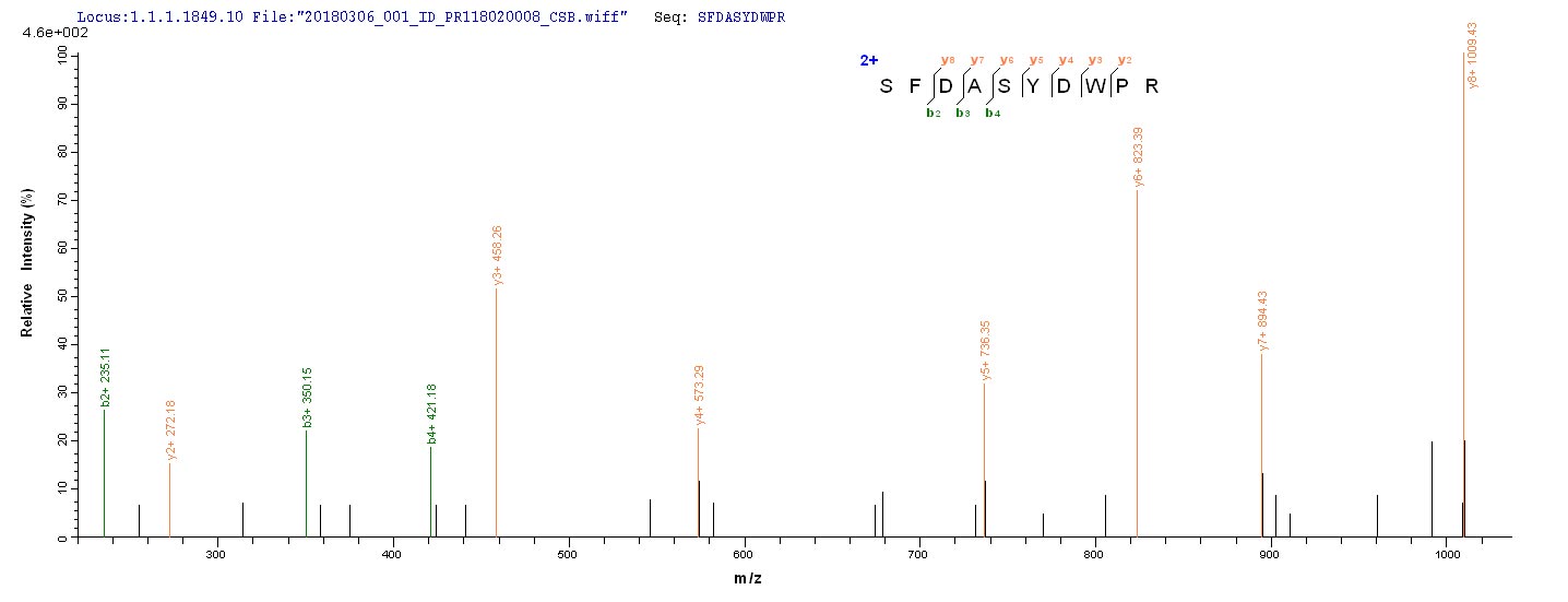 Based on the SEQUEST from database of E.coli host and target protein, the LC-MS/MS Analysis result of CSB-EP318588EZX could indicate that this peptide derived from E.coli-expressed Pseudomonas aeruginosa (strain ATCC 15692 / PAO1 / 1C / PRS 101 / LMG 12228) lasA.
