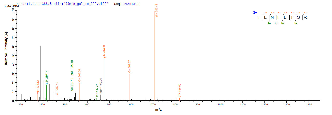 Based on the SEQUEST from database of E.coli host and target protein, the LC-MS/MS Analysis result of CSB-EP011659SH could indicate that this peptide derived from E.coli-expressed Ovis aries (Sheep) IL4.