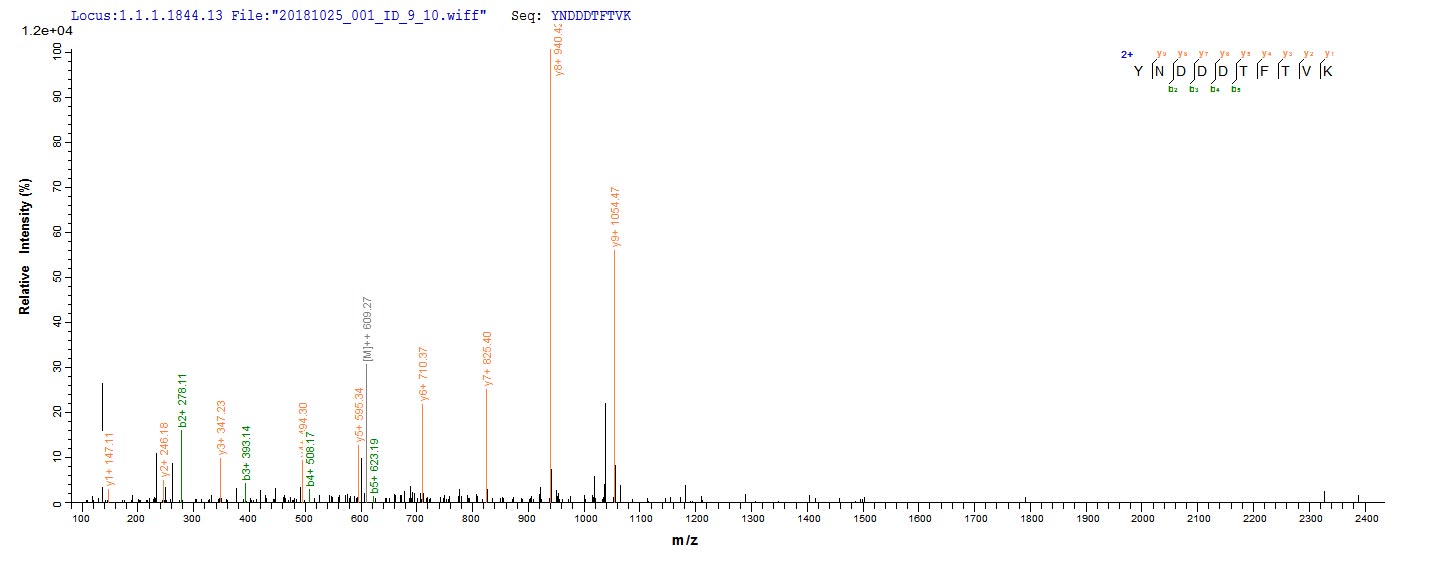 Based on the SEQUEST from database of E.coli host and target protein, the LC-MS/MS Analysis result of CSB-EP653424SGF could indicate that this peptide derived from E.coli-expressed Shigella dysenteriae serotype 1 (strain Sd197) stxB.
