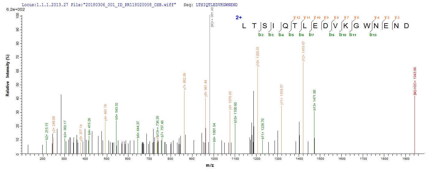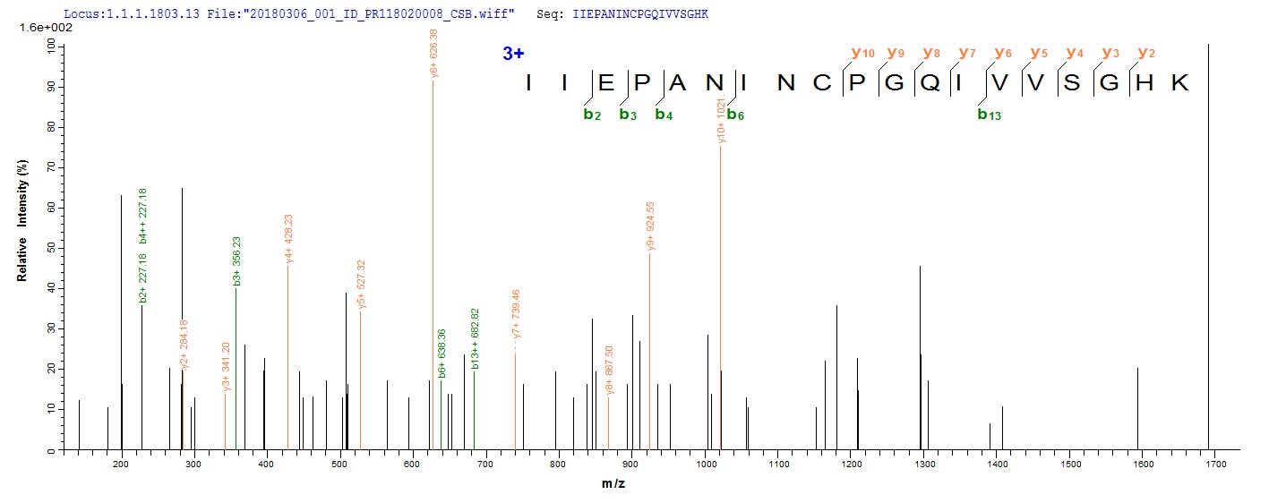 • Based on the SEQUEST from database of Yeast host and target protein, the LC-MS/MS Analysis result of CSB-YP686101FLB could indicate that this peptide derived from Yeast-expressed Staphylococcus aureus (strain COL) fabD.