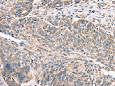 The image on the left is immunohistochemistry of paraffin-embedded Human ovarian cancer tissue using CSB-PA087606(DECR1 Antibody) at dilution 1/50, on the right is treated with synthetic peptide. (Original magnification: ×200)